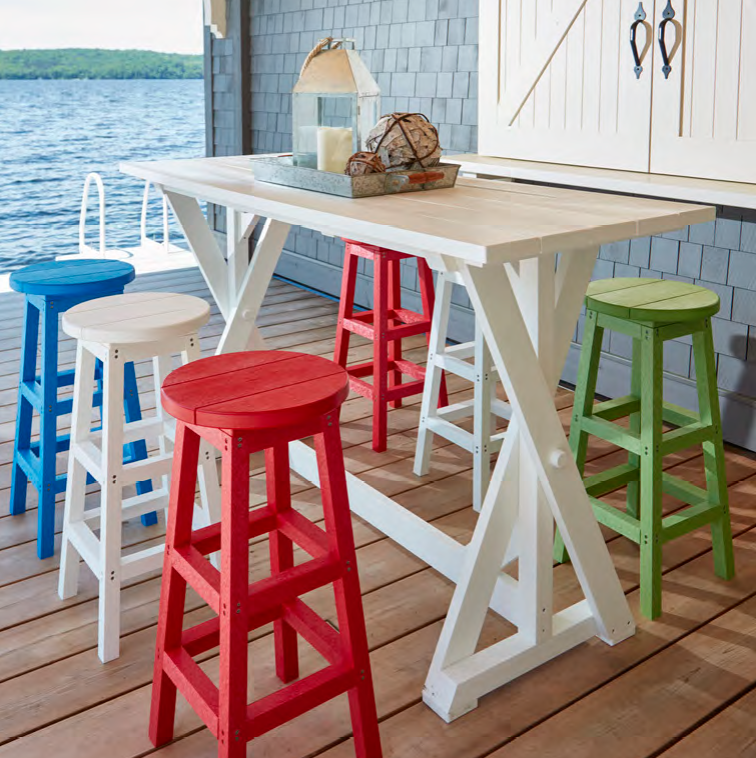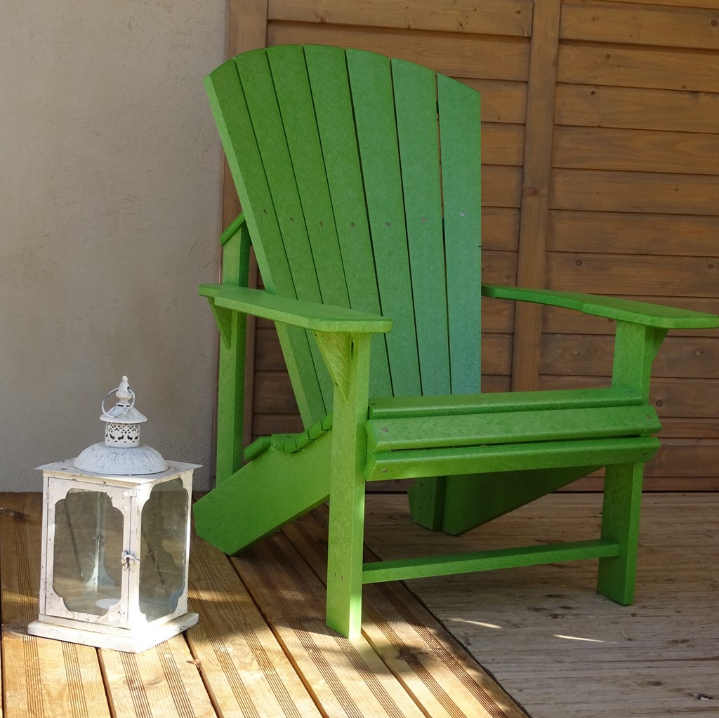 Chaque chaise adirondack utlise 579 bidons de laits en plastique recyclé.